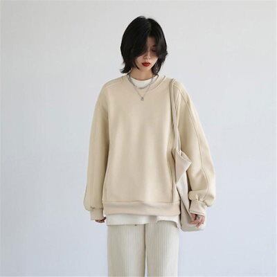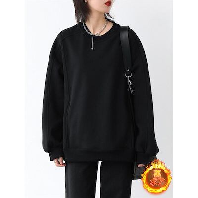 パーカー プルオーバー レイヤード 裏ボア 裏起毛 厚手 レディース トップス カジュアル 春秋 秋冬 長袖 カットソー トレーナー ゆったり 体型カバー