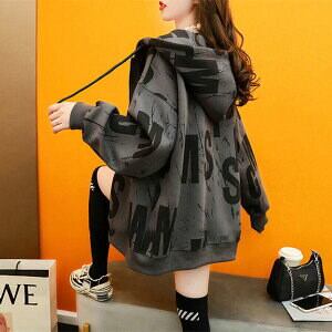 レディースパーカージップジップパーカージップアップパーカージップアップフードパーカーパーカーアウタートップス長袖秋レディース薄フード付き大きいサイズゆったり総柄ビッグシルエット大きめ