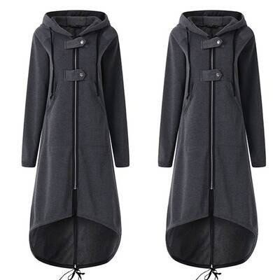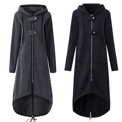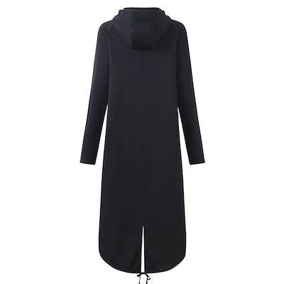 ロング パーカー レディース ジャケット カーディガン 羽織り フード付き ジッパー ポケット付き アシンメトリー 大きい ルーズ 体型カバー 楽ちん 普段使い 通学 お出かけ 着回し ママ マタニテ