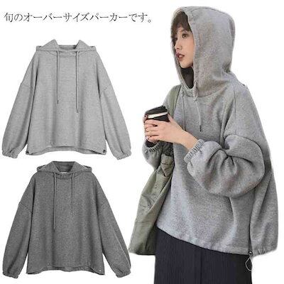 ルーズなシルエットが魅力的 パーカー ショート丈 レディース オーバーサイズ トップス 無地 フード付き パーカ スウェット トレーナー 秋冬 裏起毛 薄手 BF ボーイフレンドライク カジュアル