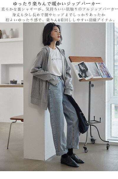スウェットパーカー パーカー ジップパーカー レディース スウェット素材 ジップ トップス 長袖 ジップスウェットロングパーカー 綿 フード付き ロング丈 ライトアウター きれいめ カジュアル シンプ