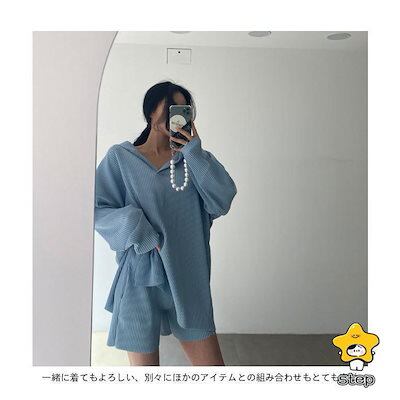 レディースパーカーショートパンツ上下セット春2点セットゆったりトレーナーカジュアルフード付きトップス長袖肩出し短パン秋