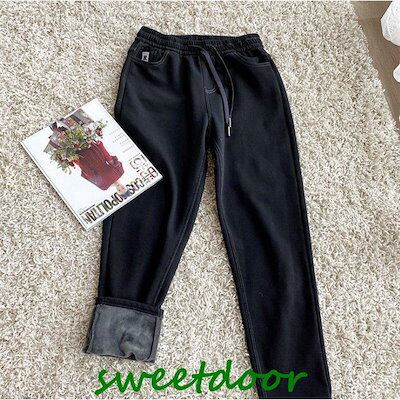 韓国ファッション テーパードパンツ 裏起毛 レディース 冬 サルエルパンツ デニム風パンツ ロング丈 ロングパンツ ボトムス 秋 冬 着痩せ カジュアル 暖かい