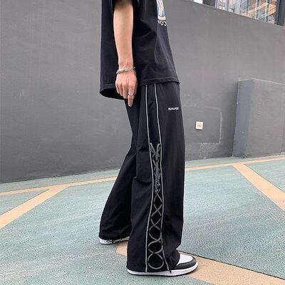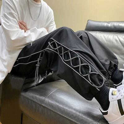 スラックスパンツ / 韓国ファッション/ゆるっとストリート お出かけ パンツ サイドライン レースアップ スポーティー ユニセックス レディース スタイルアップ 色っぽ 女っぽ カジュアル きれいめ