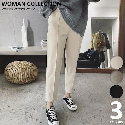 テーパードパンツ レディース 厚手 あったか アンクルパンツ ホワイト ベージュ ブラック