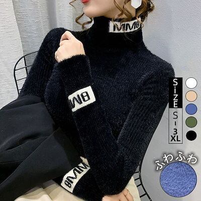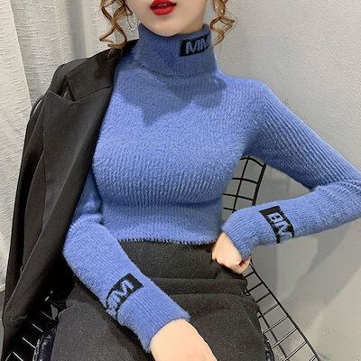 人気なリブニット 秋冬百掛け 人気! ハイネックニットセーターふわふわモヘアニット タートルネック 韓国ファッション暖かいアンダーウェア セーター レディースカシミヤタッチ