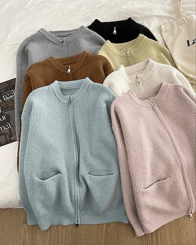 【2個で200OFF】ニット カーディガン レディース 秋冬 厚手 前開き セーター アウター 羽織り 体型カバー 着痩せ カジュアル 秋 冬 セーター ゆったり ショート 秋 冬 春先