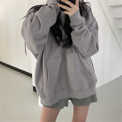 パーカー 秋冬 裏起毛 スウェット 薄いファスナー トレーナー アウター カジュアルコートゆったり 大きいoversize 韓国 レディース スポーツウェア セットア マウンテンパーカー