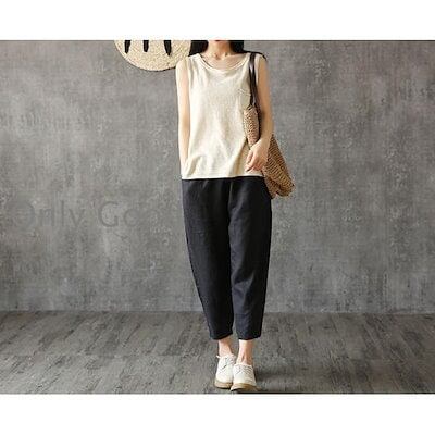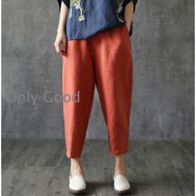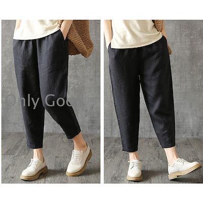 ボ パンツ ズボン レディース テーパードパンツ 七分 綿麻 綿 麻 無地 付き コットン ン カジュアル 夏