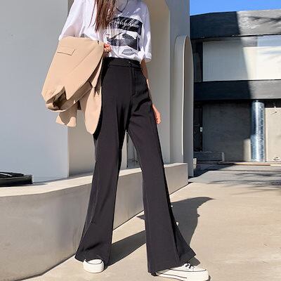 フレアパンツ スリット入り スラックス パンツ きれいめ サイドスリット レディース ブーツカット サイドスリットパンツ スリット ベルボトム ボトムス 美脚 脚長 オフィス オフィ