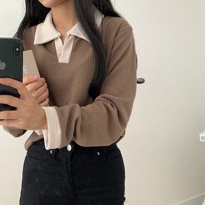 2024秋 長袖 Tシャツ ショート丈 カットソー トップス カジュアル 配色韓国系ストリートへそ出しK-POPタイトネックスリーブ 肌見せ T ファッションレディース かわいいハーフ衣装風冬トップス