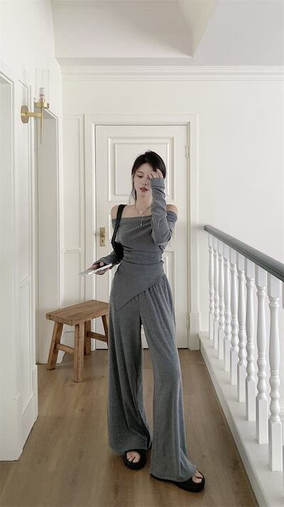 2024 秋冬 トップス 長袖 かわいいラウンドネック トレーナーTシャツ 肌見せ レディース ストレート韓国風ルーズゆったりカジュアルおしゃれサイズシルエットファッション系コーデ衣装上下セットアップ