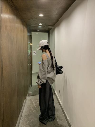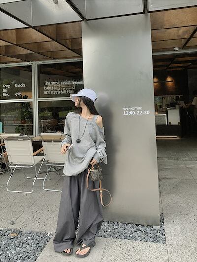 2024 秋冬 トップス 長袖 かわいいラウンドネック Tシャツ 肌見せ レディース 韓国風 ルーズ ゆったり 無地 カジュアル おしゃれサイズ シルエットファッション系コーデ衣装お出かけ