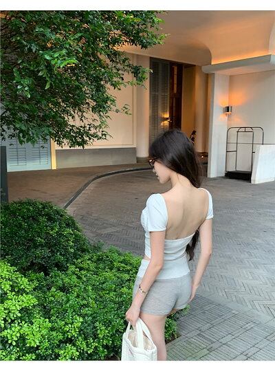 2024 春夏 甘い トップス Tシャツ ラウンドネック丈 休日 フレンチ プリント 韓国 ブラウス ファッション系 タイト スリムフィット丈短め半袖 ショートレディースへそ出し休日おしゃれT