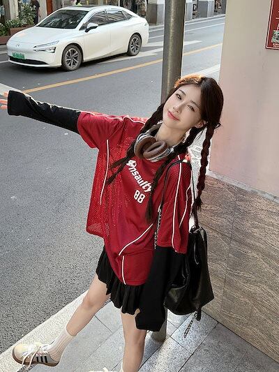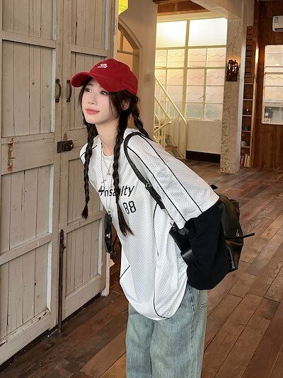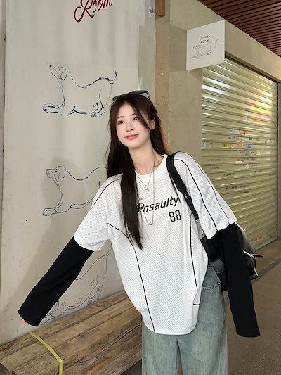 秋 韓国可愛い風トップス Tシャツ ファッション系 長袖 フェイクレイヤード サイド 重ね着シルエットゆったり丈レディース韓国サイズおしゃれ カジュアル メンズライク T