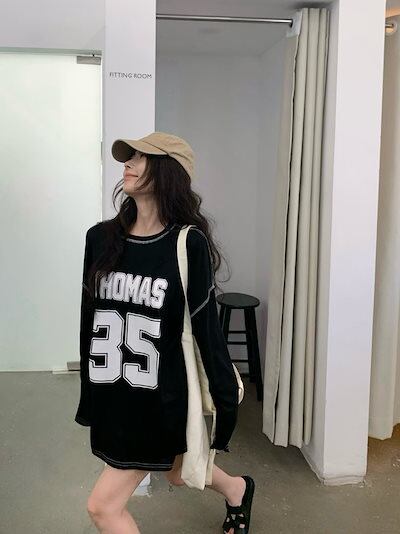 秋韓国可愛い風トップス Tシャツ ファッション系 長袖 プリント ルーズ サイド ペイントシルエットゆったり丈 レディースサイズ韓国Vネック おしゃれ カジュアル メンズライク T